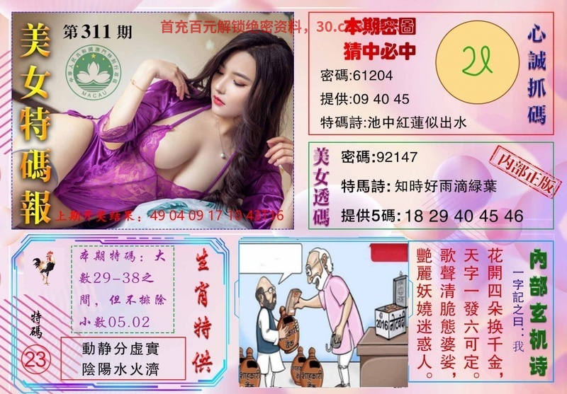| 314期:👑三季中特👑【夏春冬】开:羊23准 |